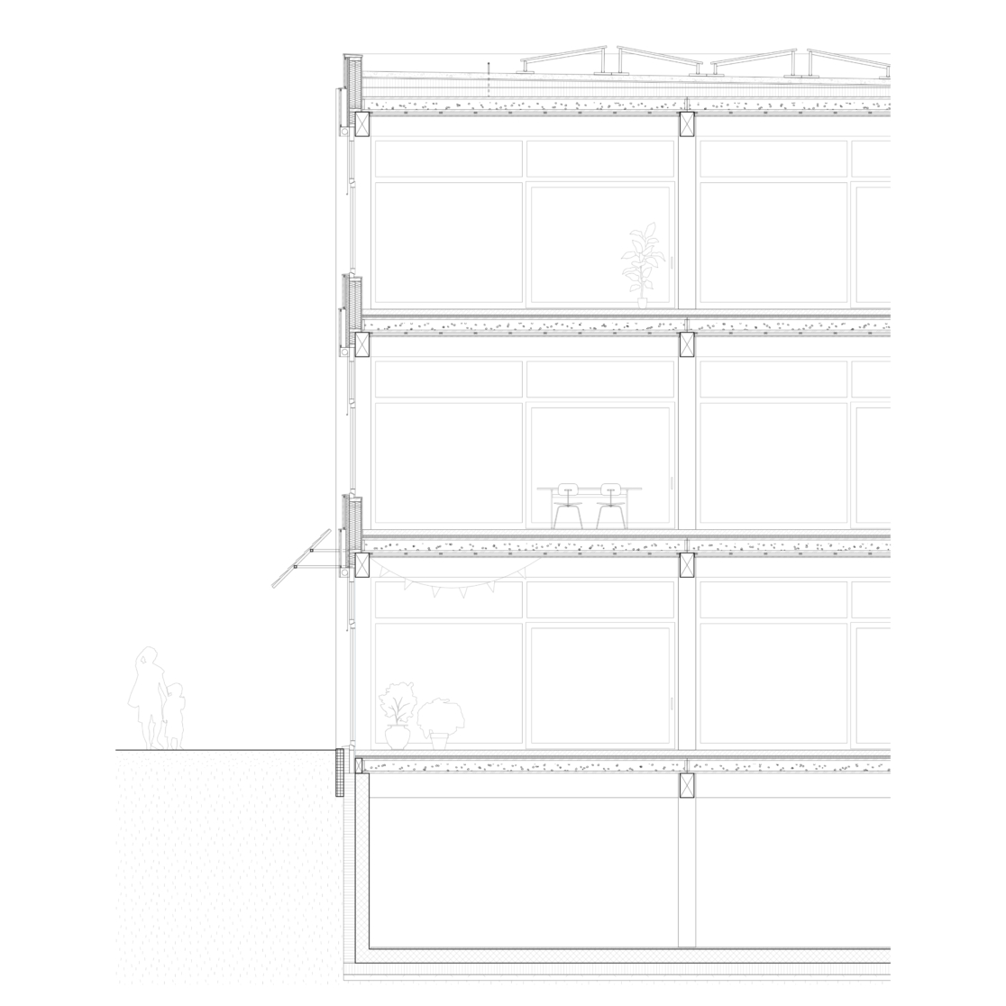 Das Gebäude ist aufgrund des klaren und geradlinigen Rasters wirtschaftlich gestaltet. In Kombination mit einem ausgeklügelten Haustechnikkonzept, das auf konsequente Systemtrennung setzt, kann der Holzbau äusserst effizient errichtet werden.
