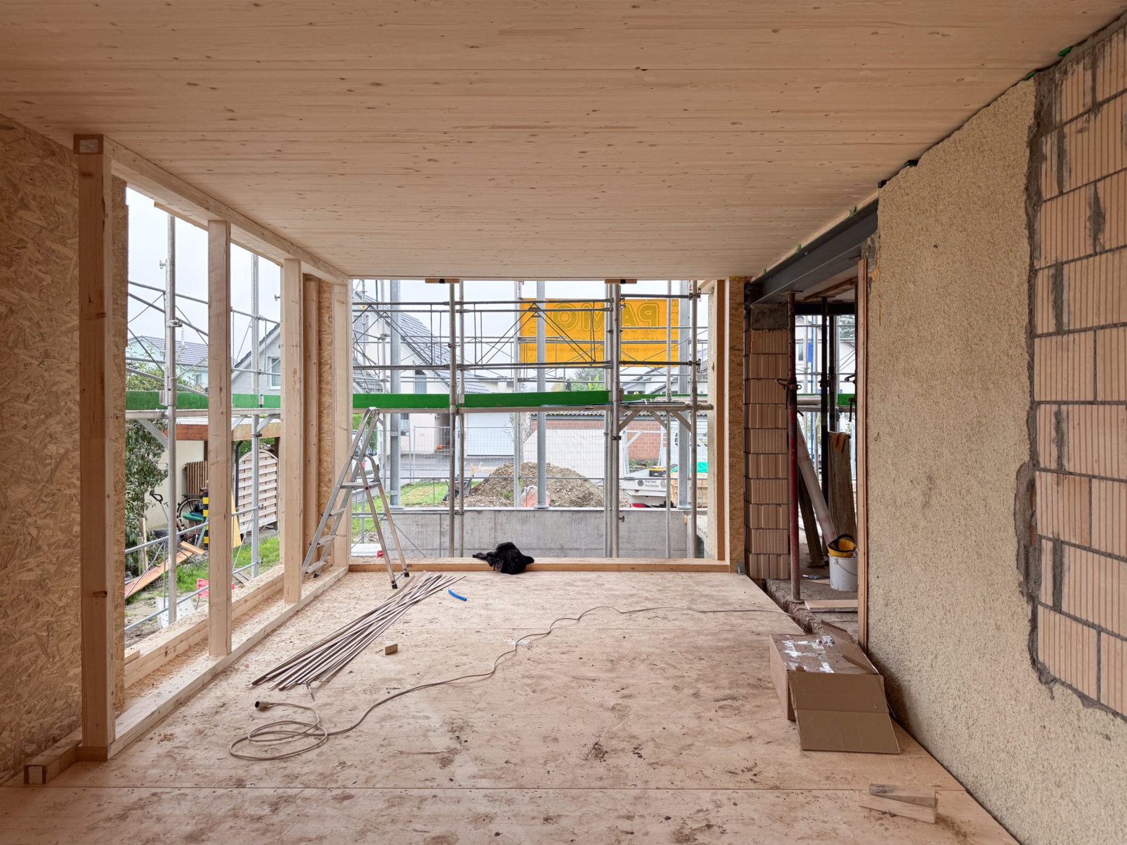 Die bestehende Ölheizung wird ausgebaut und durch eine Luft-Wärmepumpe ersetzt. Die Heizverteilung erfolgt über eine neu verlegte Bodenheizung. Unterstützt wird das System durch eine auf dem Dach vorgesehene PV-Anlage.